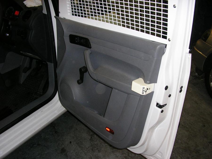 Design and manufacture of security window grilles fitted to a VW Caddy as well as a security bolt and slam lock conversion to both cab doors. A simple security upgrade for a low value vehicle. The windows also have anti-bandit film fitted with bomb blast protection.Caddy