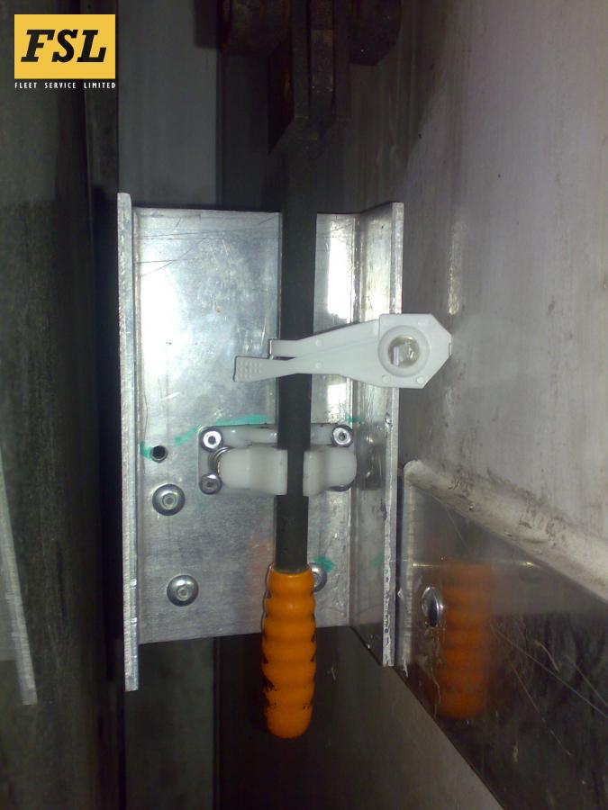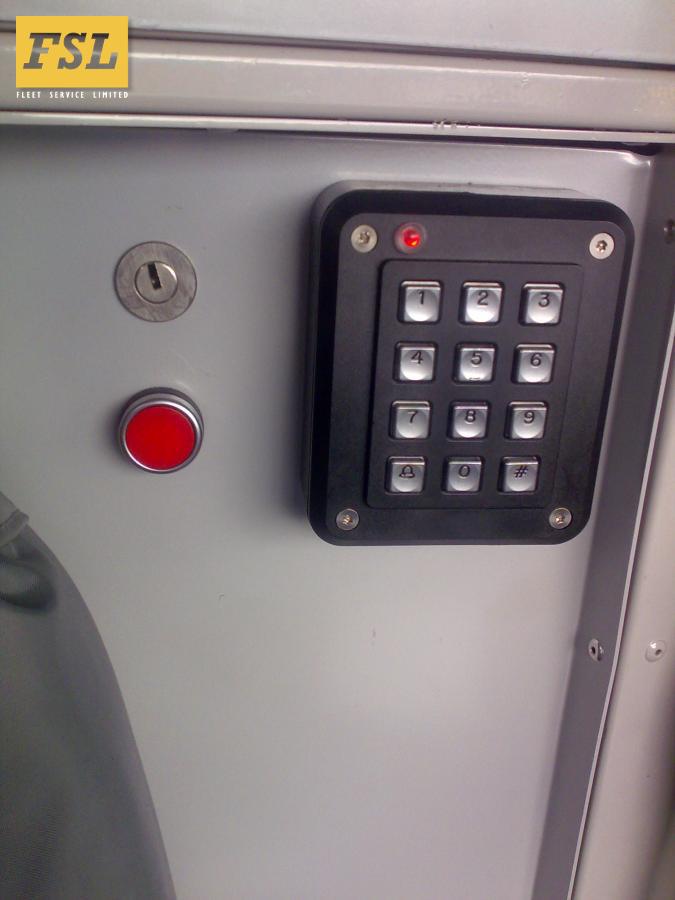 Reverse engineer existing wiring loom, remove old PLC controller and fit new controller with more advanced door control software.Reduce the side loading door (original form of entry) to half width and attach to the side of the vehicle to create 60mm opening. Manufacture a new swinging door and locking system with emergency release.