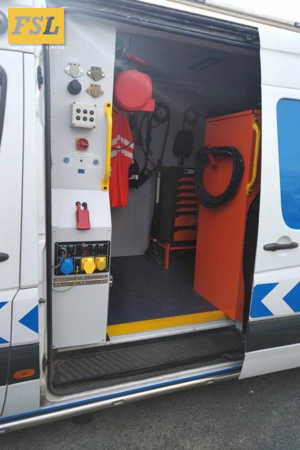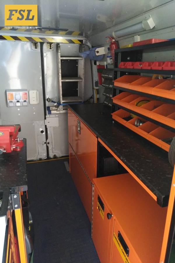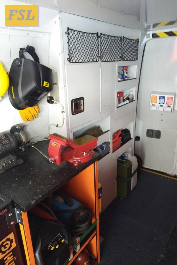 FSL have been providing on site support to its clients for over 30 years. The van has been equipped in house utilising some of the technical control systems and security that we install on the specialist security vehicle conversions we build. The vehicle can operate all tooling and equipment it carries by the use of its built-in, remote start, diesel generator and compressor system. Livery and paintwork carried out in-house.